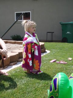 Happy 4th of July everyone! I know it's a couple days late but better late then never! Well we had a fun one. We woke up Saturday morning and had the best dutch oven breakfast up to my parents house. Then we had a water party with Makenna's pool, a slip and slide and of course a sprinkler under the trampoline. Makenna was just in heaven. Then we had a BBQ with the Southwick's and we watched fireworks up to Rus and Kristy's place. They have a good view and it's not overcrowded with people. It was a very nice and relaxing weekend. We even got Makenna to finally hold a sparkler. She was so cute! And of course I've got some pics of the weekend.